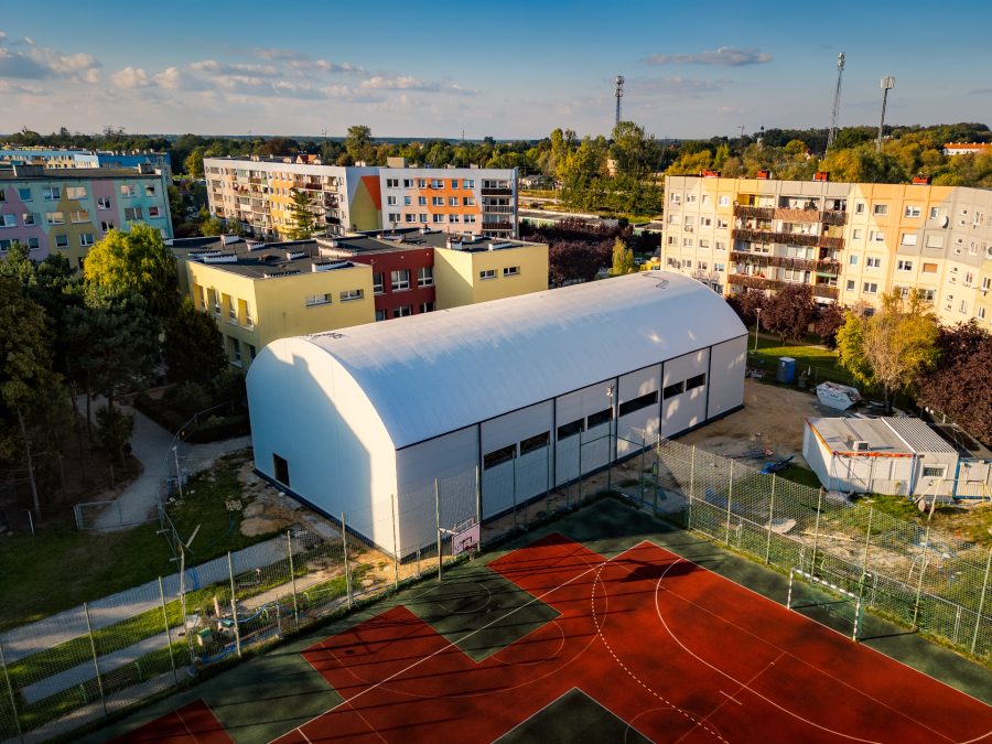 - zadaszenie metalowe o konstrukcji samonośnej boiska,